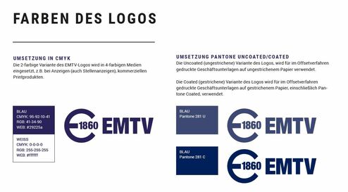 Wie wird der Außenauftritt des EMTV mit Logo, Wort-Bild-Marke und in welchen Stilen (Farbdefinition, schwarz aud weiß, freigestellt etc.) verwenden?