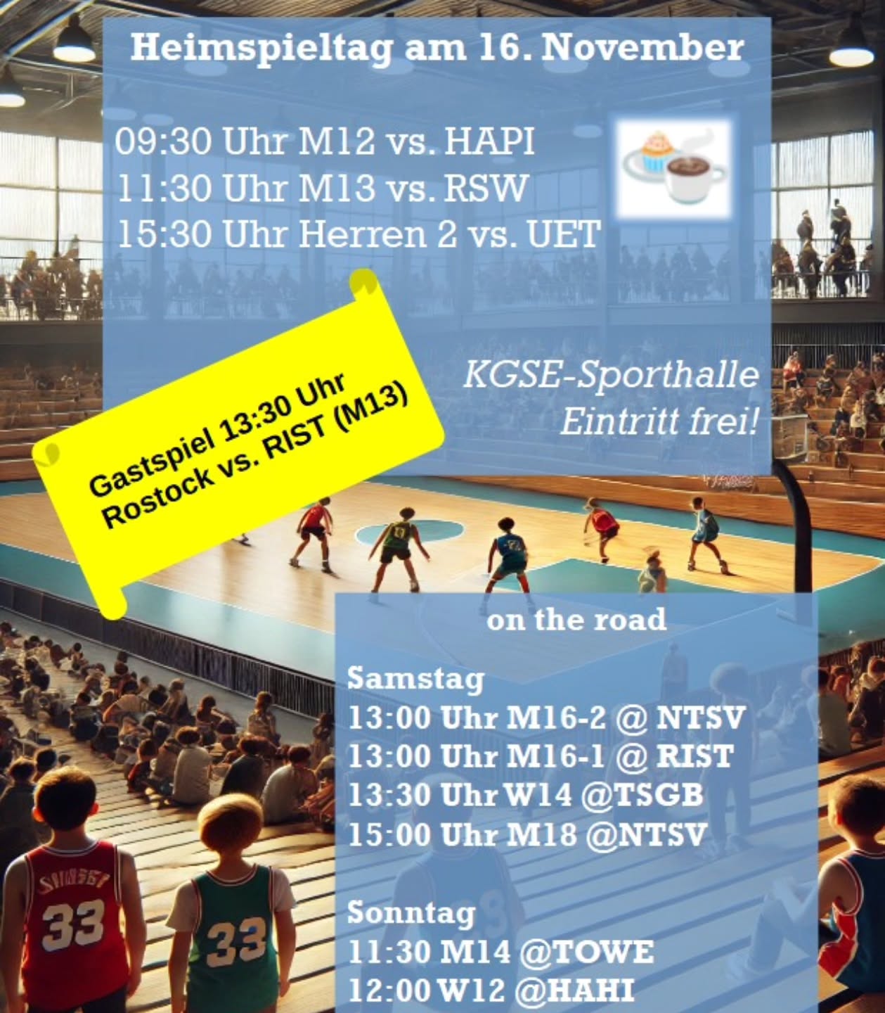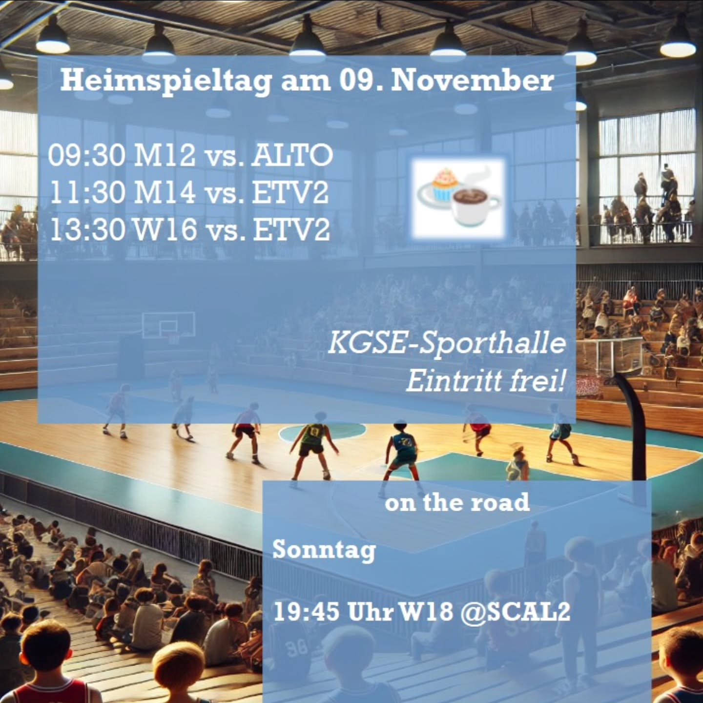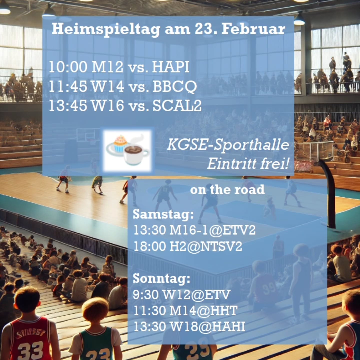 Wir treffen uns am Sonntag in der KGSE Halle, dort spielen unsere jüngsten Jungs ihr zweites Heimspiel. Danach geht es mit M14 & W16 weiter. Kommt vorbei, für Kaffee und kalte Getränke ist gesorgt.