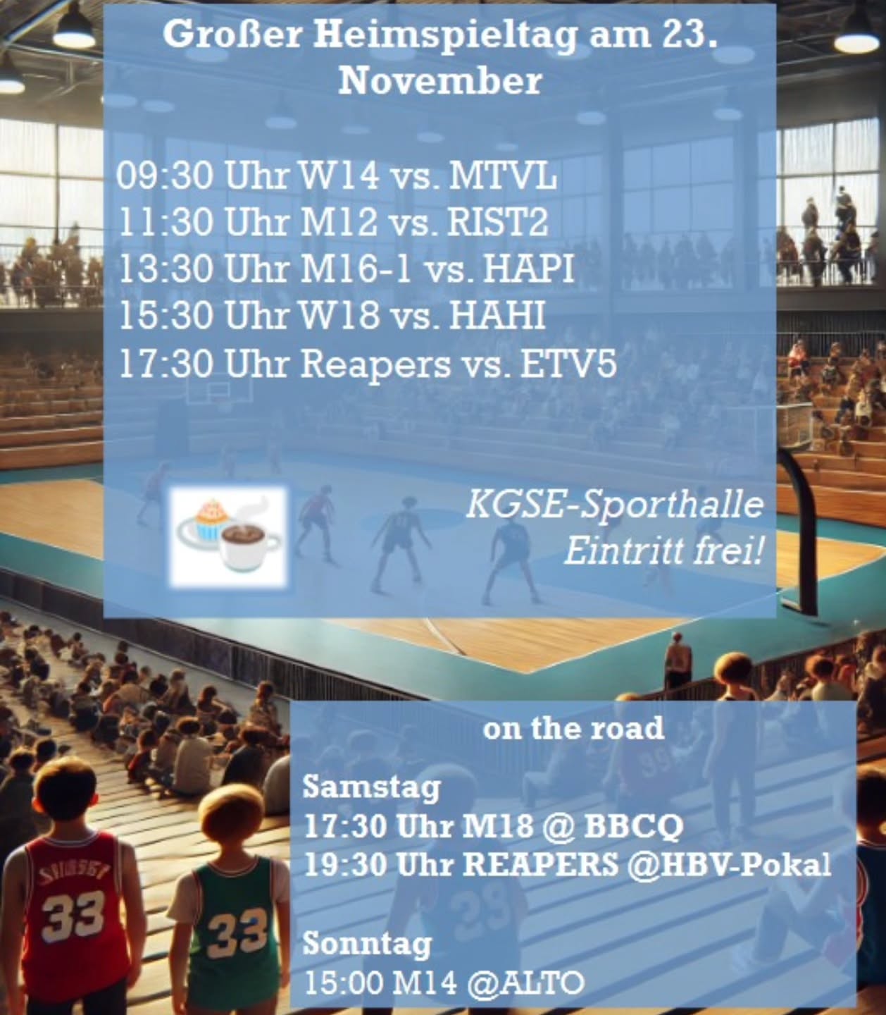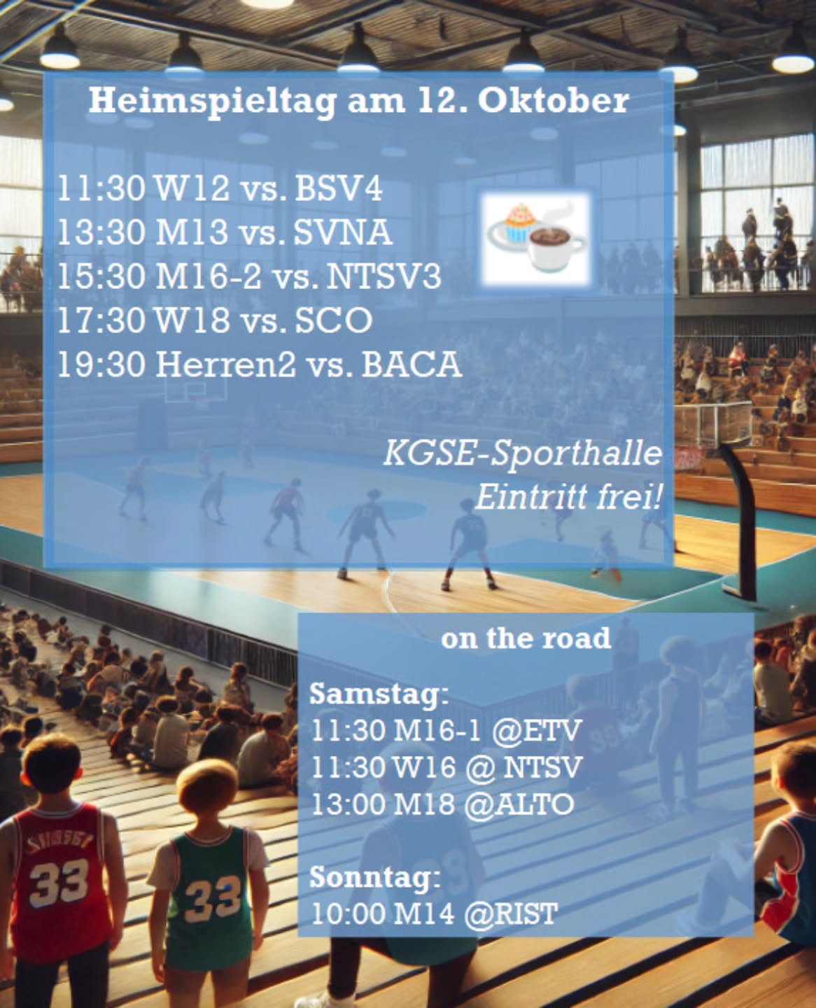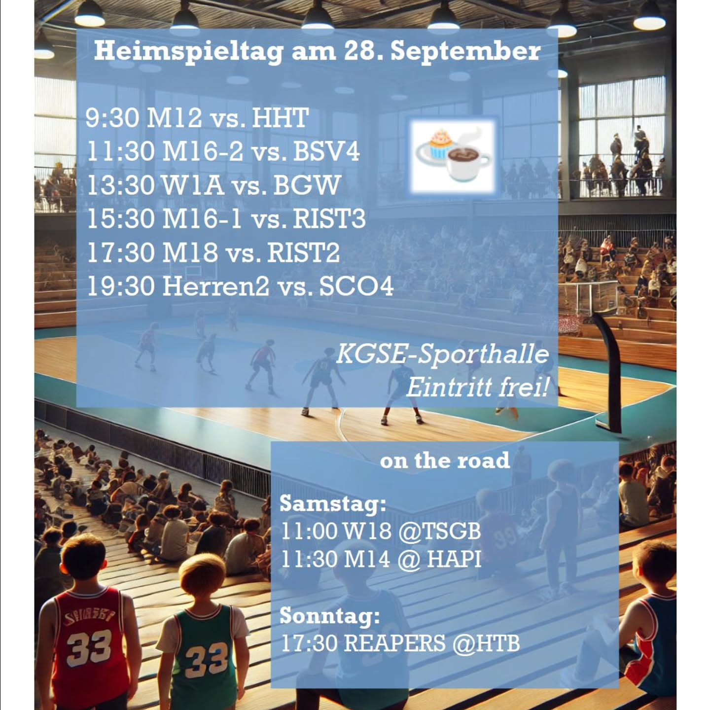 Wir treffen uns am Sonntag in der KGSE Halle, dort spielen unsere jüngsten Jungs ihr zweites Heimspiel. Danach geht es mit M14 & W16 weiter. Kommt vorbei, für Kaffee und kalte Getränke ist gesorgt.