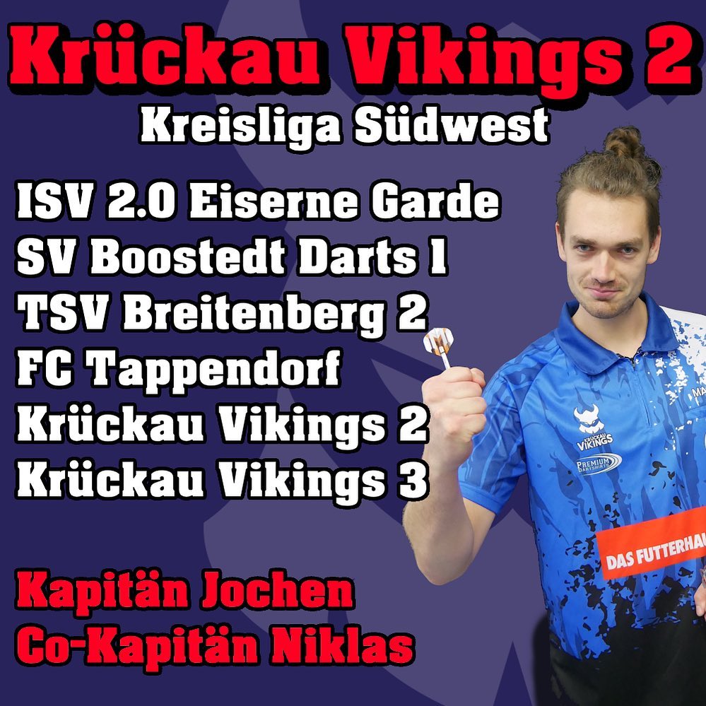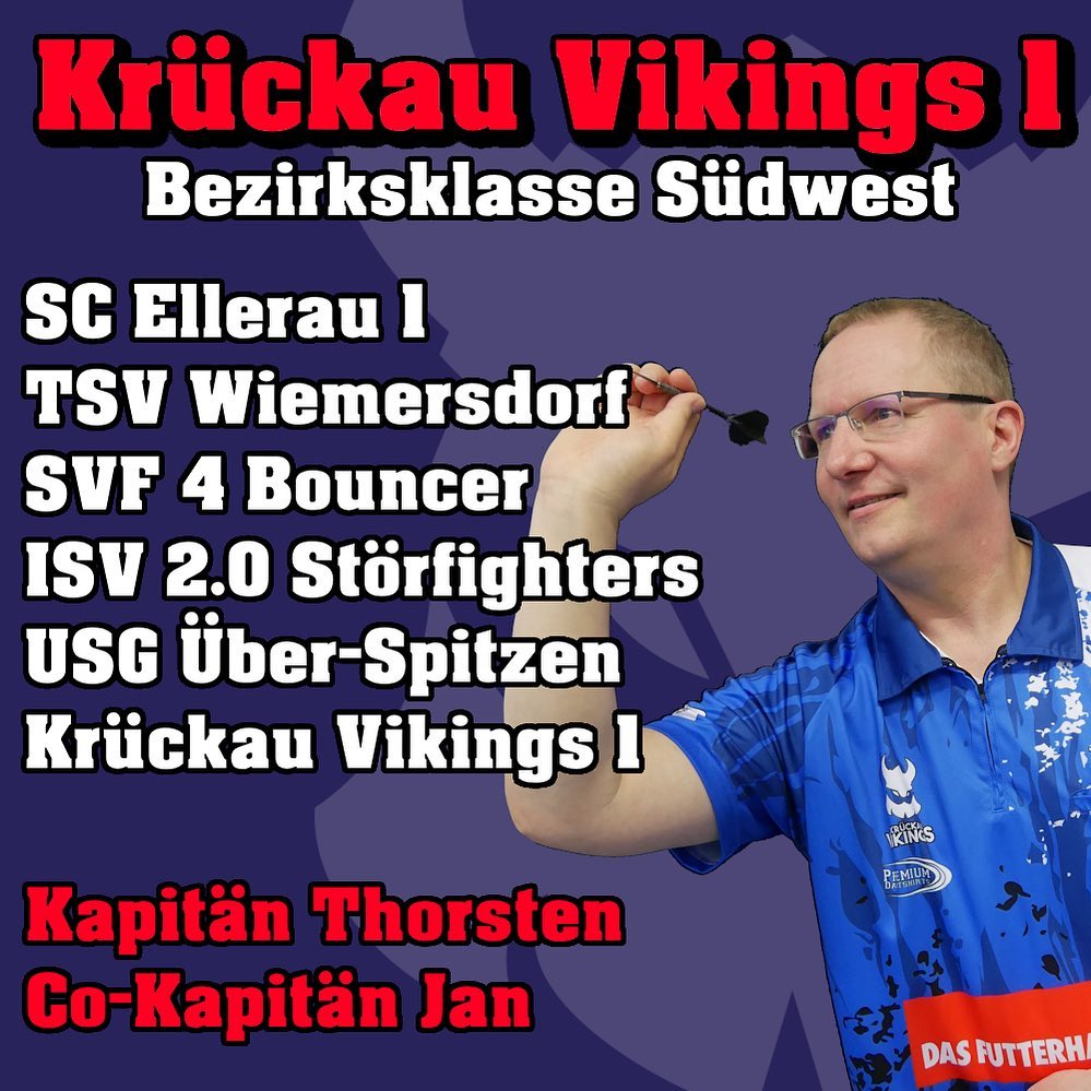 Die Krückau Vikings 1 spielen in der Bezirksklasse – SW, die Krückau Vikings 2 und 3 in der Kreisliga – SW.