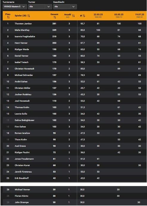 Für das Masters im Dezember sind alle Teilnehmer startberechtigt, die an mindestens 2 der 4 Turniere dabei waren.