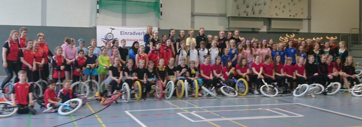Zahlreiche Einradler der Altersklasse unter 15 Jahren aus ganz Schleswig-Holstein führten Ihr Können gemäß den vorgegebenen Kategorien der Trickliste vor.