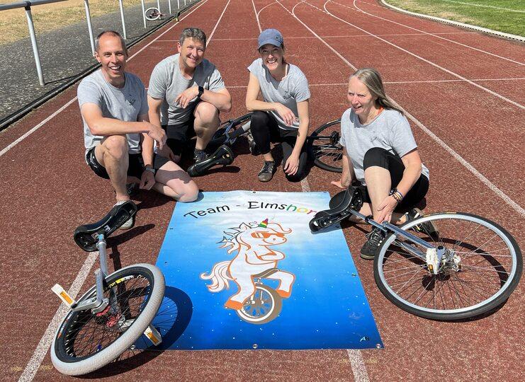 Hier das Team aus Norddeutschland beim Einradmarathon in Görlitz. Drei Mitglieder des EMTV sind dabei.