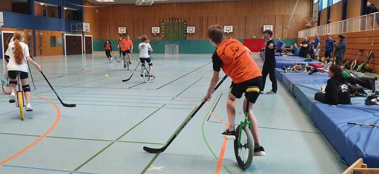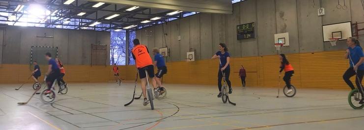 Derby: Auf dem Spielfeld Elmshorner Einradhockeyteam gegen Elmshorner Rennschnecken.