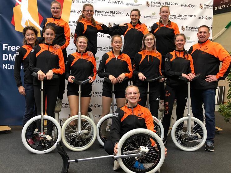 17 Einradfahrerinnen und Einradfahrer des EMTVs waren in allen Kategorien von Einzel, Paar, Kleingruppe und Großgruppe vertreten und errangen großartige Platzierungen bis hin zum Landesmeistertitel.
