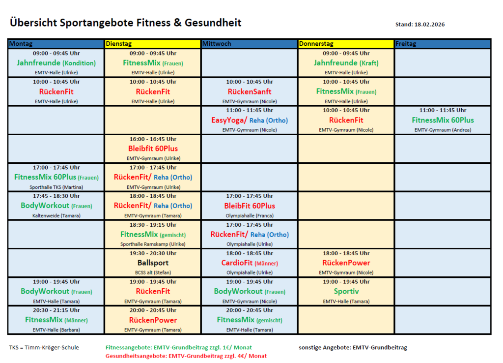 Mit fast 30 Sportkursen stellen wir seit vielen Jahren qualitativ hochwertige Bewegungsprogramme für unsere Mitglieder bereit.