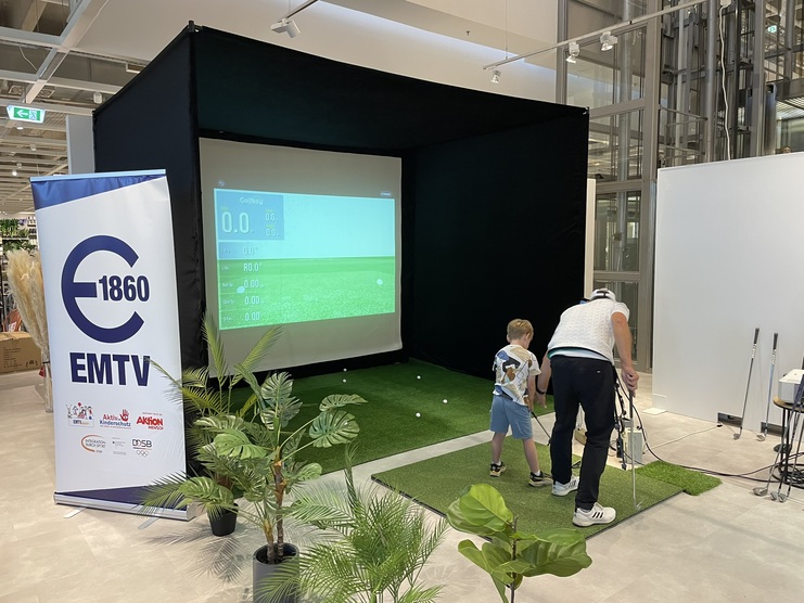 Golf spielen in der Golfbox. Unter Anleitung mit Simulator möglich. Gerne anmelden unter Golf@EMTV.de.