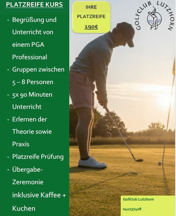 | Freitag 01.04. – 31.10. | 16:30 – 18:00 | Golfplatz Lutzhorn |