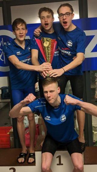 Zusammen mit Kjell Boyens starteten Johannes Liebmann, Kolja Dieckmann und Moritz Hell noch in den Staffeln und belegten mit guten Zeiten über 4x200 Freistil, 4x100 Freistil und 4x100 Lagen die Plätze 4, 5 und 6. Mal schauen, ob die Zeiten für die Qualifikation zu den Deutschen Meisterschaft Finals Anfang Juli in Berlin reichen.
