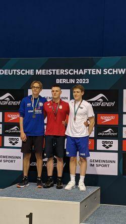 Drei weitere Medaillen konnte sich Johannes Liebmann über 100m Schmetterling (3. Platz), 200m Schmetterling (2. Platz) und 200m Freistil (2. Platz) sichern.