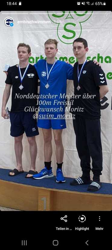 Auch Moritz Hell (Jahrgang 2006) war an diesem Wochenende erfolgreich unterwegs und wurde SHSV Landesjahrgangsmeister über 100 m Brust, 100 m Rücken, 200 m Rücken, 100 m Freistil, 200 m Freistil und 200 m Lagen. In der offenen Wertung bedeutete dies für Moritz drei weitere Landestitel (100 m Rücken, 200 m Rücken und 200 m Lagen). Über die Strecken 100m Brust und 100 m Lagen wurde Moritz jeweils Drittplatzierter.
