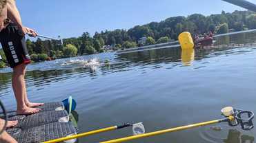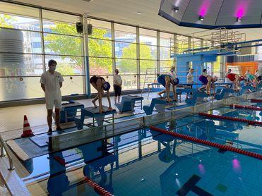 Cheftrainerin Carmen Braun wurde am Beckenrand von Emily Schröder und Bennet Fiefeck unterstützt, die selbst aktive Leistungsschwimmer*In waren und nun die Schwimmabteilung als Trainer unterstützen.