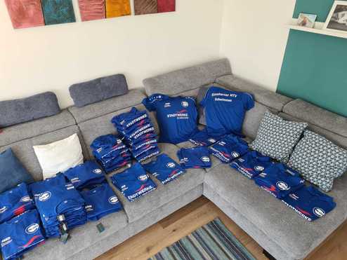 Je nach sportlichem Erfolg werden unterschiedliche Pakete mit T-Shirts, Polo Shirts und Trainingsjacken an die SportlerInnen ausgegeben.