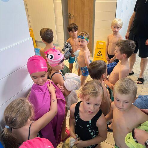 Die jüngsten Schwimmer sind etwa 5 und die ältesten ca. 10 Jahre alt. Jeder Teilnehmer erhält eine Medaille .