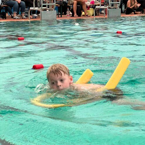 Die Jüngsten aus der Grundausbildung (ohne Seepferdchen) durften mit Schwimmnudeln an den Start.