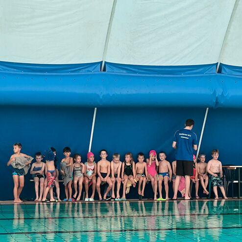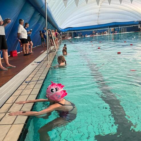 Es handelt sich um einen kleinen kindgerechten Wettkampf für unsere Kinder- und Breitensportgruppen. Die Kinder schwimmen in der Traglufthalle auf Querbahnen (20m Bahn).