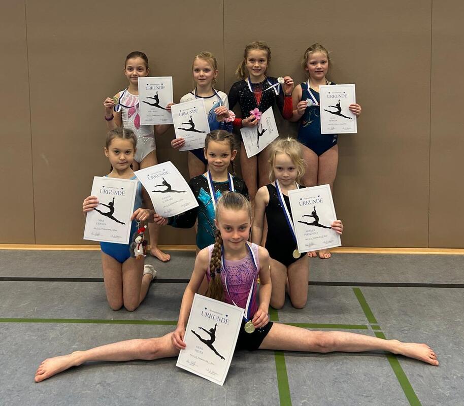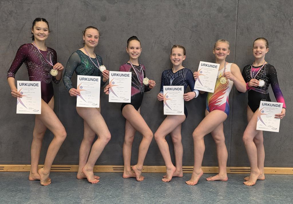 Bei den Kreiseinzelmeisterschaften gingen in der AK6 vier Turnerinnen an den Start. Das beste Ergebnis erzielte Merle Höter auf Rang 8. Ihr folgten Feline Saul, Lene Arneth und Ariella Perminova auf den Plätzen 14, 17 und 18.