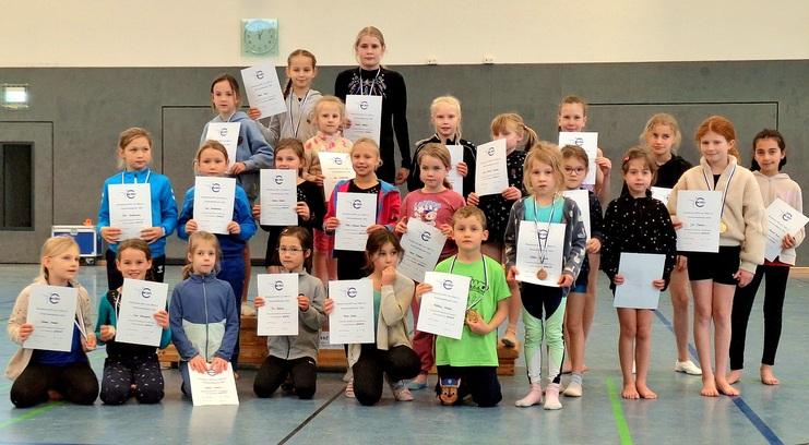 Am Ende des Tages konnten alle Teilnehmer stolz ihr Gerätturnabzeichen und eine Urkunde in Empfang nehmen. Die strahlenden Gesichter der Kinder und die Freude über die bestandene Prüfung waren der Lohn für die harte Arbeit und das Training der vergangenen Wochen.