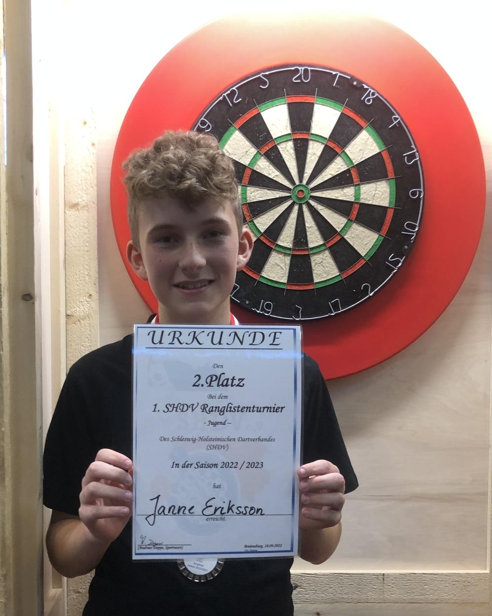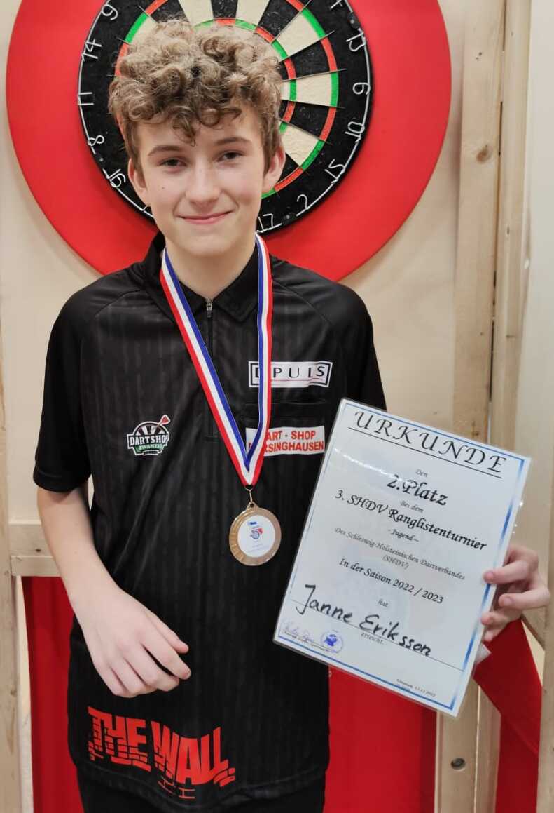 Nun stand das Halbfinale an und Janne wuchs über sich hinaus. Einige Legs spielte er mit einem 100+ Average und ließ Löptin aus Kiel keine Chance. Am Ende gewann er mit 4-1, einem 71,76 Average und stand bei seinem ersten Turnier direkt im Finale! Sein Gegner hieß Nicardo Pieper und war der klare Favorit. Er konnte bereits in der Vergangenheit viele Jugendturniere gewinnen. Aber Janne ließ sich davon nicht unterkriegen und lieferte Nicardo einen echten Kampf. Am Ende hatte Janne sogar Matchdarts, konnte diese aber nicht nutzen. Für ihn war es dann Platz 2 von 26.